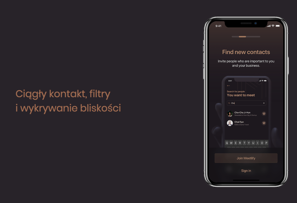 2. W przypadku ograniczenia formatu organizowanych wydarzeń (brak wydarzeń networkingowych lub administracyjnego ograniczenie spotkań publicznych w licznym gronie) Meetlify pozwala efektywnie wyszukać interesujące kontakty w najbliższym otoczeniu użytkownika.